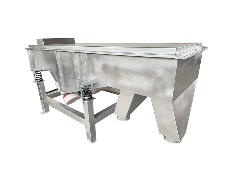 直線振動篩利用振動電機激振作為振動動力來源,使物料在篩網上被拋起,同時向前作直線運動,物料從給料機均勻地進入篩分機的進料口,通過多層篩網產生數種規格的篩上物、篩下物、分別從各自的出口排出。具有耗能低、產量高、結構簡單、易維修、全封閉結構,無粉塵溢散,自動排料,更適合于流水線作業。